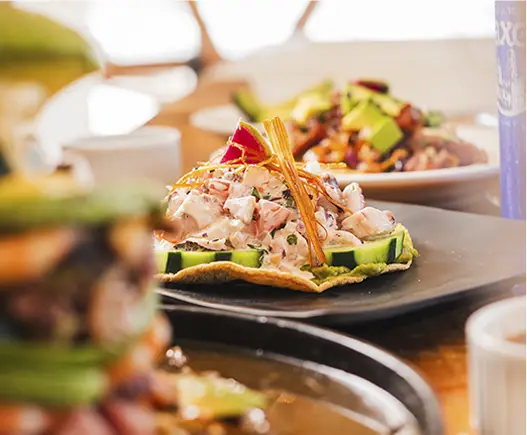 Con vistas al Pacífico y un ambiente cálido y familiar, deleita tu paladar con platillos locales e internacionales preparados con ingredientes frescos del día. Acompaña tu comida con un cóctel artesanal o una copa de vino mientras disfrutas de la brisa marina.